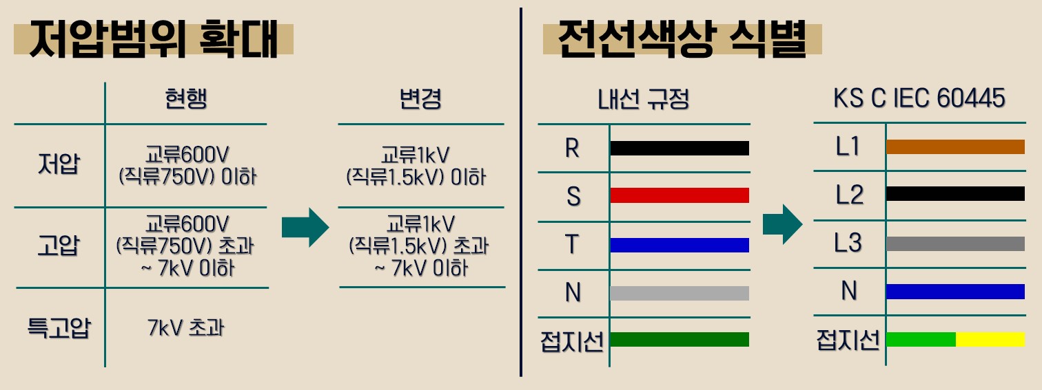“신재생 에너지” : 풍력 발전과 태양광 설비는 바람이 많이 불거나 한낮 많은 볕이 드는 시간이 되면 전압이 상승하는데요, 기존의 규정에 따르면 전압 범위를 초과하게 된답니다. 그래서 수입 태양광 제품들을 국제표준에 맞게 전압을 설정하곤 했으나 국내 규정과의 충돌로 어려움이 많았다고 해요. 하지만 전압 범위 확대로 인해 이러한 문제가 해결되면서 신재생 에너지 분야의 활성화도 기대해볼 수 있겠어요.